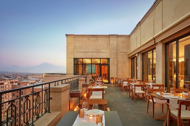 Auf der obersten Etage verspricht das Italiano Ristorante ein kulinarisches Erlebnis mit landestypischem Flair in glamourösem Ambiente. Geleitet wird das Restaurant von international renommierten Köchen, die Spezialitäten wie geräucherte Forelle aus der Region servieren und das exotische Element der Destination mit moderner italienischer Küche kombinieren. Die angrenzende Bar besticht nicht nur durch köstliche Cocktails und eine eindrucksvolle Weinauswahl, darunter herausragende Jahrgänge aus Armenien, sondern auch durch einen herrlichen Ausblick. Der Keys Aficionado's Private Club samt edler Bar und Weinkeller ist der ideale Ort für alle, die Privatsphäre und Komfort schätzen. In der Gabriel’s Bar und Lounge schließlich können Gäste bei Snacks und Getränken entspannen, während Gabriel’s Patisserie ausgesuchte Tee- und Kaffeespezialitäten zu feinstem französischen und armenischen Gebäck reicht.