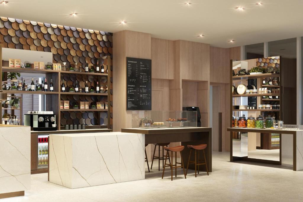 Zwei der Zimmer verfügen außerdem über ein Peloton-Fahrrad - praktisch für Gäste, die in den eigenen Wänden trainieren möchten. Die Lobby ist mit einer neuen Sofaecke und Arbeitstischen ausgestattet. Darüber hinaus gibt es in der Lobby einen "Grab & Go"-Laden, der sowohl tagsüber als auch nachts Snacks und Getränke anbietet.