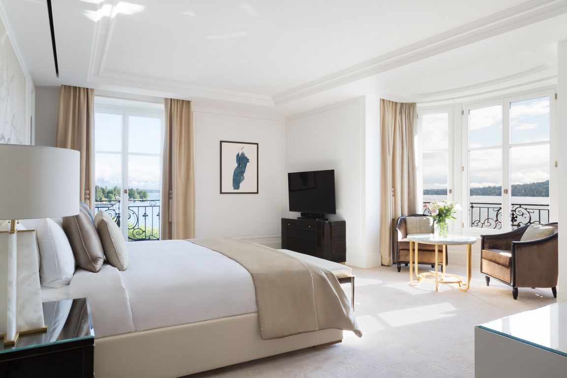 "Das Woodward ist mehr als nur ein Fünf-Sterne-Hotel. Es wurde so gestaltet, dass es sich wie ein spektakuläres Haus am See anfühlt - mit all dem vertrauten Komfort eines intimen Herrenhauses", so Pierre-Yves Rochon, Architekt. Die Präsidentensuite ist das Juwel des Hotels. In Elfenbein- und Blautönen bietet sie ihren Gästen von dem Balkon wie von jedem der Schlafzimmer einen Panoramablick auf den Genfer See. Das Wohnzimmer offenbart ein Kunstwerk: ein lackierter Holzschrank, der mit Frühlingsblumen dekoriert ist und eine funkelnde "Experience Bar" enthält.