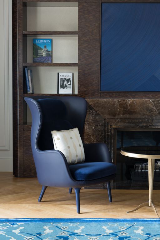 Mit Blattgold verzierte Türen, Wände aus Makassar-Ebenholz, Samt-Sofas von Pierre-Yves Rochon und glänzende Teppichböden verleihen The Woodward Akzente eines Belle-Epoque-Hotels. Ein französischer, vergoldeter Spiegel und ein Baccarat-Kristalllüster sind eine Hommage an die glorreiche Vergangenheit des Hauses, während ein Bronzetisch von Hervé Van der Straeten und Sessel von Ralph Lauren modernere Akzente setzen.