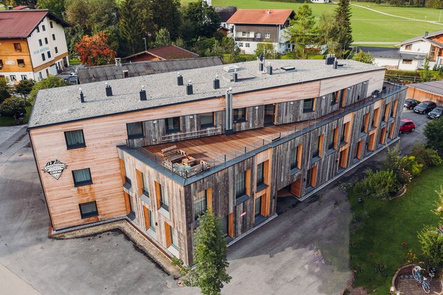 Knapp 30 Quadratmeter für Singles und 45 für Paare: Die neueste Crew-Unterkunft des Tiroler Hotel Jungbrunn bietet insgesamt 31 Wohneinheiten – alle mit kleiner Küche, Eichenparkett, Fensterfronten und bodentiefen Duschen samt Glaswand.