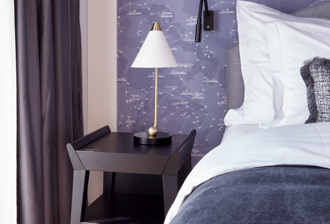 Drei Designer zeichnen für das Tortue verantwortlich. Die 114 Zimmer, acht Suiten und vier Longstay-Apartments strahlen schon beim Betreten dank des wunderbaren Mustermix, dezenten Farbgebungen und überlegten Proportionen eine Wohlfühlatmosphäre aus. Vornehme, aber einladende Zimmereinheiten hat Innendesignerin Kate Hume in ihrem ersten kommerziellen Großprojekt geschaffen. Sie kombiniert eigens für das Tortue Hamburg angefertigte Tapeten von Little Owl Design aus Amsterdam mit sanften Messinghängelampen von Arieti, hellgefliesten Bädern und Illustrationen aus Wasserfarbe der Hamburger Künstlerin Anne Katrin Stroeh. Französische Balkone an einigen der Zimmer runden das Flair ab.