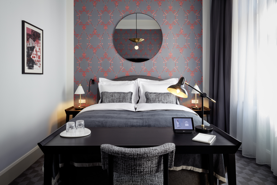 Üppige, weiche Materialen in den Zimmern, Restaurants und Bars sollen zum Längerbleiben und Zurücklehnen animieren. Ausladende, historische Innenhöfe laden zum Verweilen, ja fast Faulenzen, ein und in den verschlungenen Gängen und Passagen lässt es sich hervorragend einfach nur mal bummeln. An den lässigen Lebensstil erinnert auch die warme, fast intim gehaltene Innengestaltung des Hotels, eine Referenz an die französische Besatzung der Stadt zwischen 1806 und 1814 – es wird gesagt, dass selbst Napoleon in diesem Viertel gelebt haben soll.
