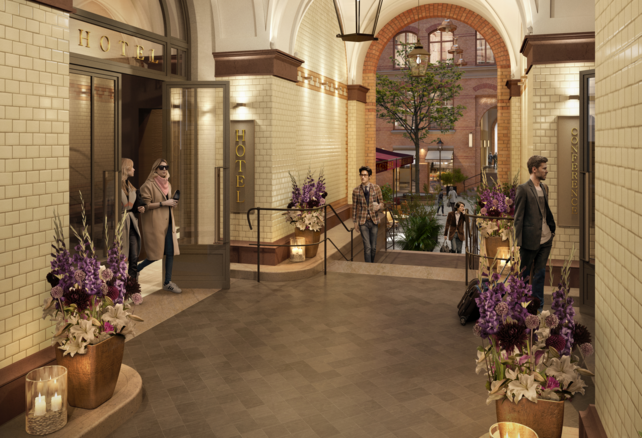 Unter der Ägide von David Chipperfield Architects und dem in Hamburg ansässigen Stephen Williams Associates wurden Säulen behutsam restauriert und in das Designkonzept eingebunden. Meterhohe Decken und schmiedeeiserne Detailarbeiten harmonieren mit original Fresken von Adrian Karbowsky aus dem Jahr 1910, Böden aus Mosaikfliesen und hohen, gewölbten Fenstern.