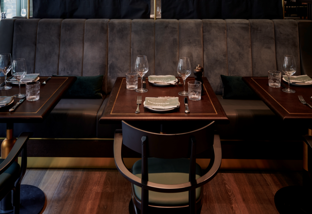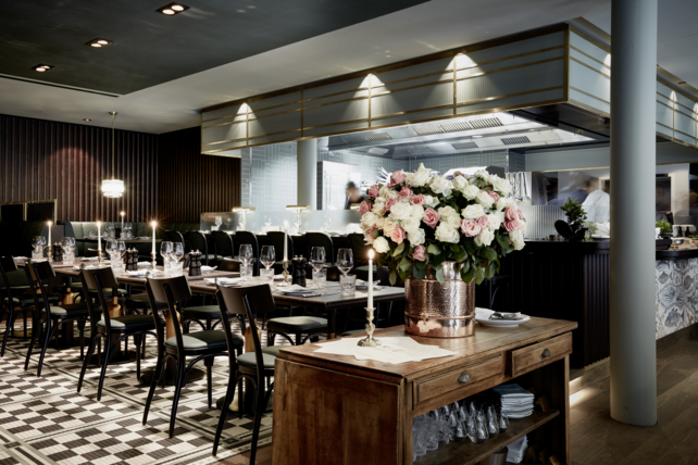 In den Restaurants und Bars des Tortue Hamburg empfängt den Gast dann ein anderes Design. Keine Geringere als die in Hong Kong ansässige Joyce Wang wählte für das asiatische Restaurant Jin Gui ein dunkleres und verführerisches Interieur - geschickt unterbrochen von kleinen Zweier-Sofas, bezogen mit einem grafischen, wandteppichgleichen Stoff. Mit saisonalen, und wann immer auch möglich biodynamischen, Gerichten werden die Gäste hier, in der Glasveranda und auf der Terrasse im Innenhof verwöhnt. Andernorts ist die französisch-deutsche Brasserie gekennzeichnet von schwarzen Metrofliesen, geschwungene Sitznischen und Marmortresen. Hingucker ist auf jeden Fall das Kunstwerk aus Mosaikfliesen von Emma Biggs hinter der offenen Küche. Dass will Tortue beliebter Treffpunkt der Gesellschaft werden und setzt dabei auch auf drei Bars – allen voran der von Stephen Williams designten „bar noir“ und Hume’s „bar bleu“ nahe der Lobby. Um dem ganzen noch die Krone aufzusetzen, eröffnet später im Jahr die Dachterrassen-Bar. Und wie soll es anders sein – auch hier heißt es sich Zeit nehmen und den Blick auf die von Herzog & de Meuron entworfene Elbphilharmonie zu genießen.
