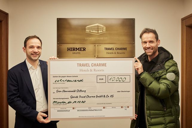 Für die wohltätigen Zwecke der Sven Hannawald Stiftung überreichte Daniel Eickworth, Geschäftsführer von Travel Charme Hotels & Resorts, Sven Hannawald einen Scheck in Höhe von 10.000 Euro. Im Fokus stehen dabei die Förderung des Jugendsports und insbesondere des Skispringens sowie die Förderung des öffentlichen Gesundheitswesens.