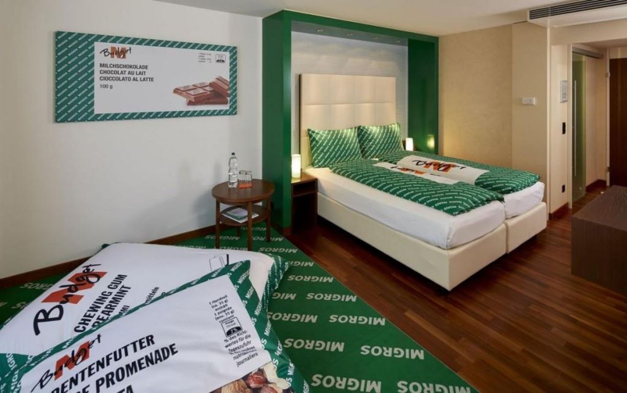 „Unser Hotel ist mit dem Freizeitzentrum nebenan eine tolle Destination für junge Gäste. Mit dem M-Budget-Zimmer bieten wir ihnen eine günstige und zugleich kultige Übernachtungsmöglichkeit“, freut sich Hoteldirektor Roland Rhyner. Die Produkte in der grün-weißen Verpackung erfreuen sich großer Beliebtheit und sind in der ganzen Schweiz bekannt. „Toll, dass nun auch noch ein Hotelzimmer im unverkennbaren Look daherkommt", ergänzt Marina Frei, Brand-Manager M-Budget.