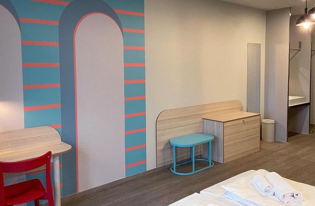 Das Meininger Venezia Mestre verfügt über 434 Betten verteilt auf 112 Doppel- und Mehrbettzimmer sowie eine flexible Bettenstruktur. Für Familien, Klassenfahrten, Freundesgruppen und Backpacker:innen eignen sich besonders die Mehrbettzimmer, die auch als Schlafsäle mit bis zu sechs Betten genutzt werden können. Darüber hinaus ist das Hotel Meininger-typisch mit einer Gästeküche, kostenlosen Babybetten, großen Gemeinschaftsräumen, einer Game Zone mit Billardtisch, einer Lobby, einer Bar, Schließfächern sowie Waschmaschine und Trockner ausgestattet.
