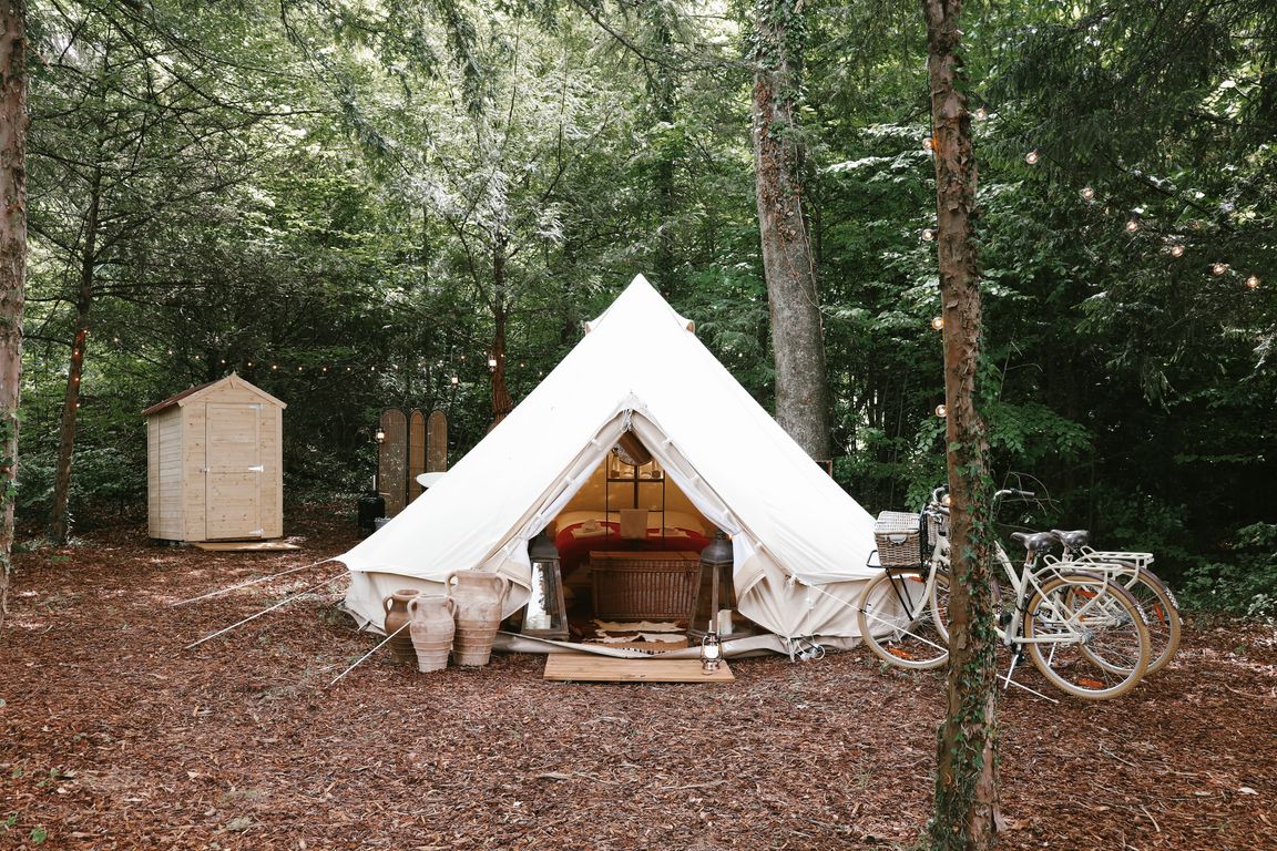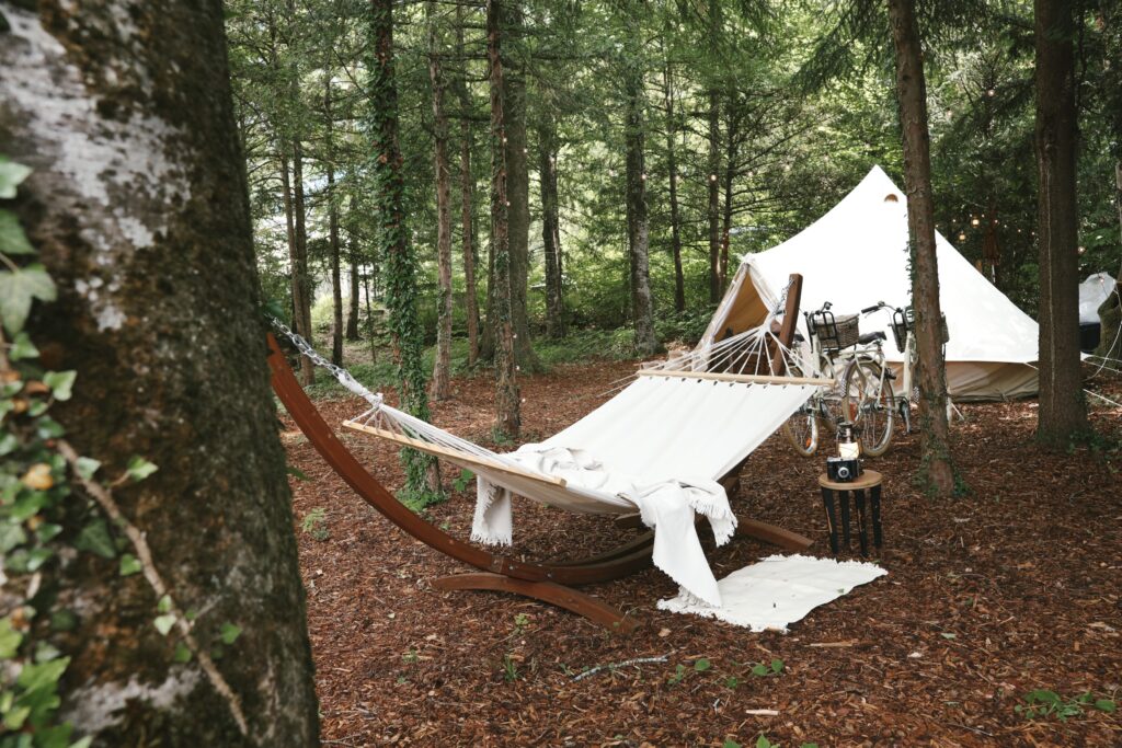 Seit dem 1. Juni 2021 bietet der Vitznauerhof in Zusammenarbeit mit der Designerin und Reisebloggerin Lucia Viana ein Glamping-Erlebnis an. Zwei Zelte im Retro-Chic stehen zwischen den Bäumen des Hotelparks am Vierwaldstättersee – ausgestattet fast wie ein Hotelzimmer, mit Spa-Zugang und Zimmerservice.