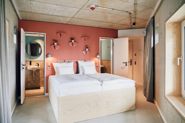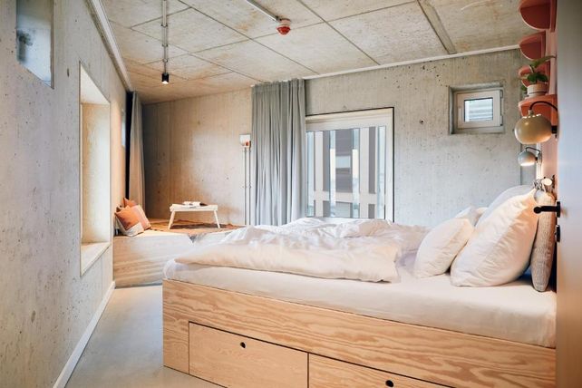 Das zwölfstöckige Hotel zeichnet sich aber nicht nur durch seine Vision aus, es ist auch gemütlich, modern, geschmackvoll und jung eingerichtet. Zahlreiche Künstler haben dafür die Zimmer und das Treppenhaus bunt gestaltet, eine Suite hat Moderatorin Barbara Schöneberger schickgemacht, eine zweite der Sänger Jan Delay. Eines der günstigsten Zimmer, eine sogenannte Camping-Box, hat die Band Fettes Brot gestaltet. Die Zimmerpreise starten bei weniger als 20 Euro und gehen bis rund 300 Euro für eine Suite.