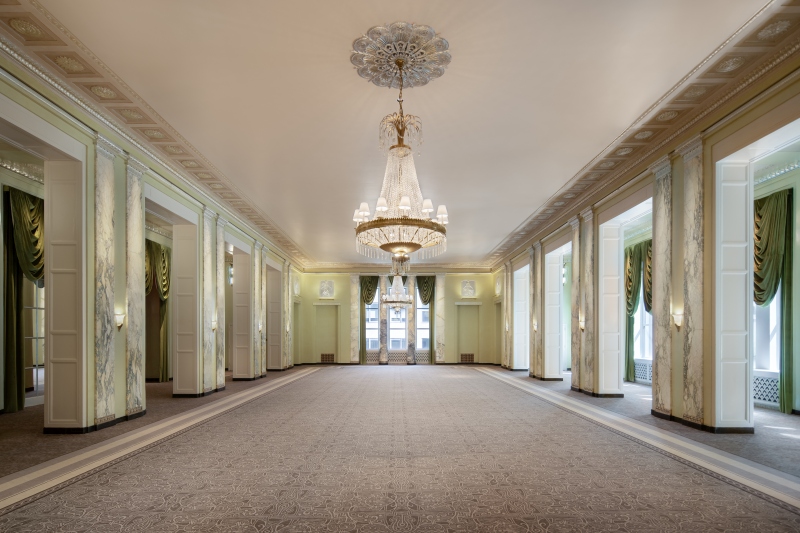 Insgesamt stehen fast 4.000 Quadratmeter Veranstaltungsfläche in 14 Räumen zur Verfügung. Auch andere berühmte Bereiche wie der Astor Salon, der Basildon Room und der Silver Corridor, der die ursprünglichen Wandgemälde des Künstlers Edward Emerson Simmons aus dem Jahr 1897 beherbergt, wurden aufwendig restauriert.