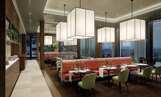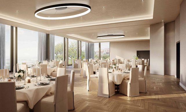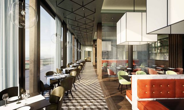 Neben dem Restaurant können sich die Gäste auch in der Bar „The View“ oder bei schönem Wetter auf einer der Terrassen verwöhnen lassen. Das Restaurant hat 120 Plätze und bietet regionale und internationale Köstlichkeiten – stets frisch zubereitet. In der angrenzenden Vinothek stehen zusätzlich 34 Plätze zur Verfügung.