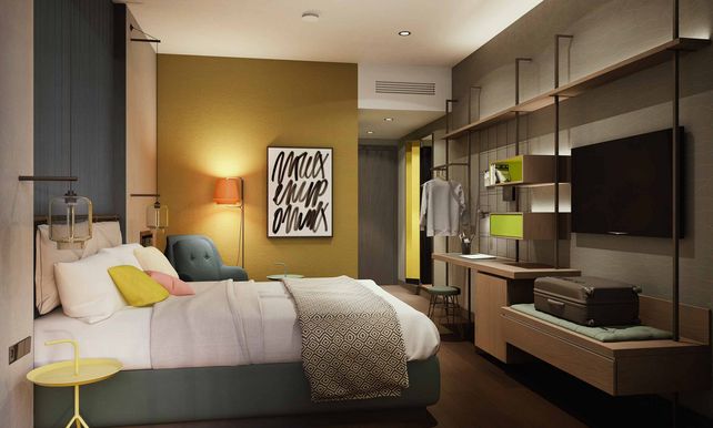 Der neue Gebäudekörper umfasst 36.000 m² umbauten Raum. Die Bauarbeiten hatten mit dem Errichten der beiden Untergeschosse zum Teil im Fels begonnen. Auf Straßenniveau befinden sich Restaurant und Tagungsräume. Darauf sitzen drei sich abstaffelnde Türme mit Zimmern, welche durch Glaszäsuren miteinander verbunden werden.