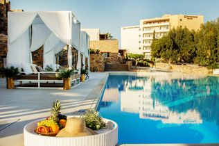 Das Anwesen mit Blick auf die Mirabello-Bucht positioniert sich fortan mit neuem Design, das die kretische Gastfreundschaft mit dem Ambiente eines Bohemian-Chic-Resorts verbinden soll, wie es das Unternehmen beschreibt. Das Interieur ist inspiriert von dem Meer und der Natur, die das Hotel umgibt und zeigt eine Farbpalette in Grün-, Beige- und Blautönen.