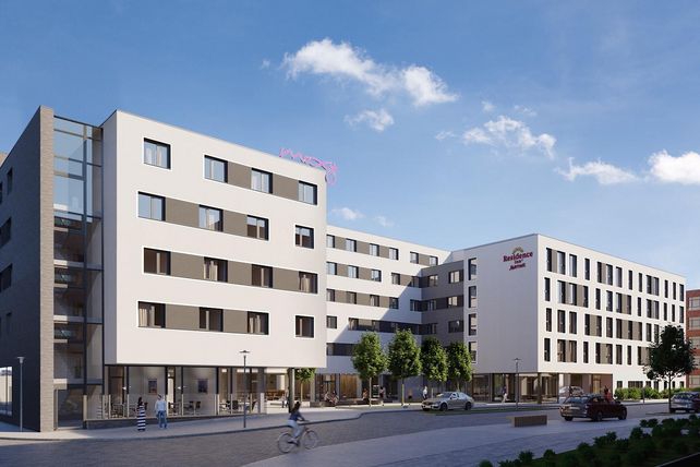 Die Immobilie umfasst 220 MOXY-Hotelzimmer und 44 Residence-Inn-Boardinghaus-Apartments mit einer Nutzfläche von zusammen rund 10.000 m². Die künftigen Gäste erwarten gut 17 m² große Hotelzimmer im MOXY und etwa 28 m² umfassende Apartments im Residence-Inn-by Marriott. Letzteres ist als Longstay-Konzept speziell auf Reisende abgestimmt, die mehrere Tage an einem Ort verweilen. Zum Gebäude gehört zudem eine Tiefgarage mit 79 Pkw-Stellplätzen, die teilweise Parkmöglichkeiten für Elektroautos samt Ladesäule vorsieht – darüber hinaus stehen 20 Fahrradstellplätze zur Verfügung.