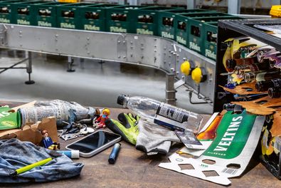 Ein Blick hinter die Kulissen: Die Sortieranlage der Brauerei Veltins verarbeitet täglich 100.000 Mehrwegkästen. Dabei werden rund zehn Prozent aufgrund von Fremdkörpern wie Smartphones, Schlüsseln oder Geldbeuteln manuell nachsortiert.