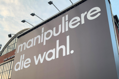 Mit Botschaften wie „mainipuliere die wahl.“ oder „kreuz ohne haken“ erinnert fritz-kola an das Privileg, seine Stimme abgeben zu dürfen. Dass die Teilnahme an der Demokratie keine Selbstverständlichkeit sei, zeige sich insbesondere bei jungen Menschen.