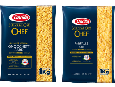 Die Linie Selezione Oro Chef von Barilla eignet sich perfekt für die Gastronomie und ist 100 % gelingsicher. Insbesondere die Ausformungen Farfalle und Gnocchetti Sardi sind sehr beliebt in Profi-Küchen