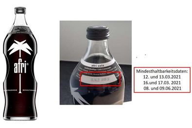 Die Niehoffs Vaihinger Fruchtsaft GmbH ruft afri Cola in Glasflaschen zurück. Laut Hersteller weisen Flaschen mit bestimmten Mindesthaltbarkeitsdaten eine Instabilität auf, die zu einer Rissbildung, schlimmstenfalls zu einem Zerbersten der Flasche führen könnten.