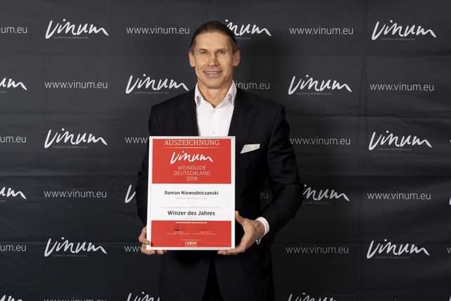 Insgesamt 34 Weingüter wurden im neuen Vinum Weinguide mit den begehrten Höchstwertungen von viereinhalb (20) und fünf (12) Sternen ausgezeichnet. Zu ihnen zählt auch das Weingut van Volxem in Wiltingen an der Saar, dessen Inhaber Roman Niewodniczanski für den Vinum Weinguide der Winzer des Jahres 2019 ist. „2015, 2016 – mit dem Jahrgang 2017 präsentiert Roman Niewodniczanski erneut eine Kollektion aus einem Guss. Vom trockenen Basisriesling bis zur restsüßen Auslese glänzen die Weine von van Volxem mit Präzision, Kraft und Finesse“, begründet Joel B. Payne das Urteil.
