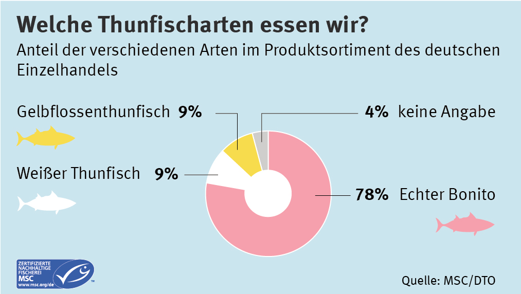 Die Crux sind hier die Dosenprodukte, die in Deutschland 70 Prozent des Thunfischkonsums ausmachen: Während die Nachhaltigkeit bei Premiumprodukten und saisonaler Aktionsware, wie z.B. tiefgekühlten Thunfischsteaks oder gekühlten Frischfisch, sehr hoch ist, ist das Nachhaltigkeitsdefizit beim umsatzstarken Dosenthunfisch im unteren Preissegment weiterhin groß.