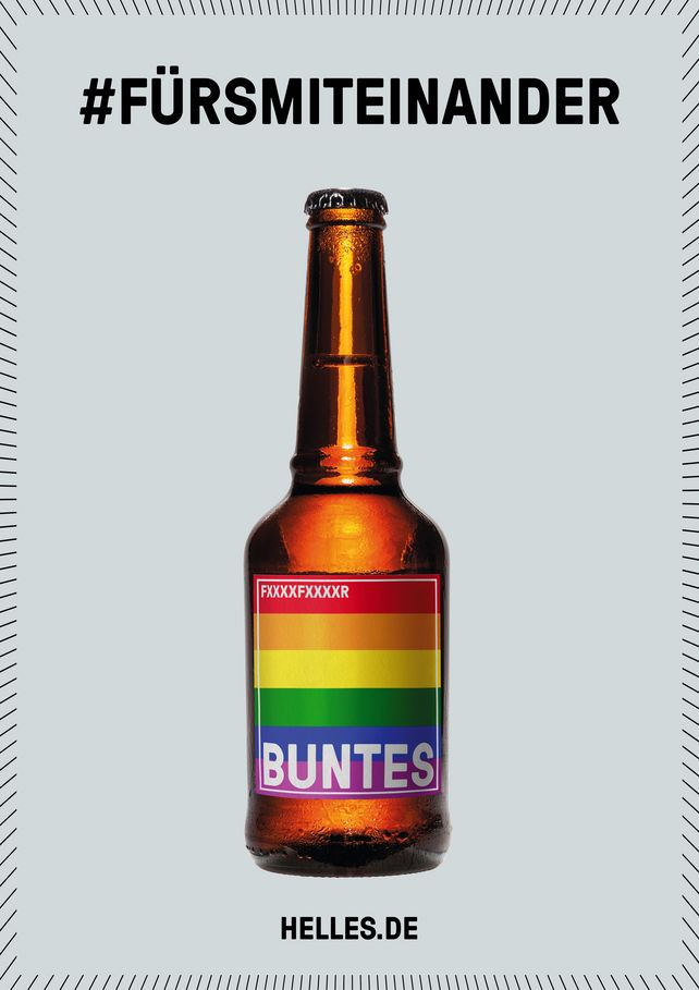 Die Frankfurter Brauunion GmbH setzt ein buntes Zeichen für mehr Miteinander und gegen Diskriminierung. Speziell hierfür wird eine limitierte Flaschenanzahl neu etikettiert und für zeitlich begrenzte Kooperationen in den Farben der Regenbogenfahne eingesetzt. Die Gewinne aus dem Vertrieb werden an unterschiedliche gemeinnützige Initiativen und Vereine in Deutschland gespendet. In diesem Jahr startet die Brauunion von Juni bis Juli 2021 eine erste Aktion zusammen mit dem gemeinnützigen Verein Laut gegen Nazis aus Hamburg.