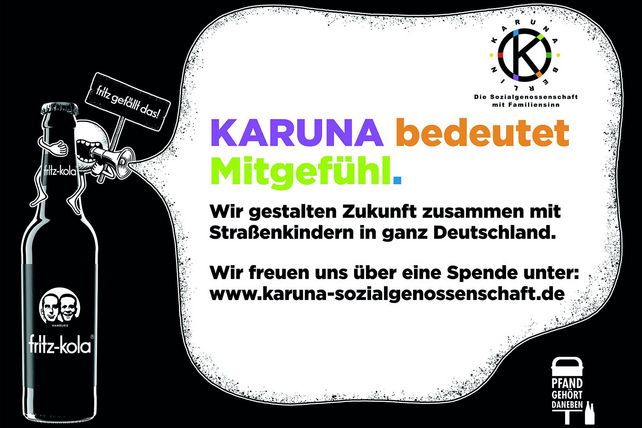 Einen besonderen Fokus bei der Auswahl der Vereine legte fritz-kola auf kleine, regionale Vereine, denen es häufig an Bekanntheit fehlt. So bieten sie unter anderem dem Hamburger Verein StraßenBlues eine Fläche für die Präsentation ihrer Arbeit: Die Initiatoren und Mitarbeiter haben sich zum Ziel gesetzt, Brücken zwischen Menschen mit gesichertem Wohnsitz und Obdachlosen zu bauen. Nikolas Migut vom StraßenBlues e.V. freut sich über die fritz-Weihnachtskampagne: „Wir sind ein noch sehr kleiner und junger Verein, der sich für Obdachlose einsetzt und großartige Werbung ist bei uns finanziell nicht drin. Daher waren wir freudig überrascht von der Plakataktion von fritz-kola: Diese Werbeflächen ermöglichen uns, das StrassenBuch mit Gedichten von Alex vorzustellen, der zehn Jahre auf der Straße gelebt hat. Für ihn eine echte Wertschätzung. Die kostenfreien Plakatflächen für ein Engagement für Mitmenschlichkeit sind ein wichtiges Zeichen in diesen Zeiten.“
