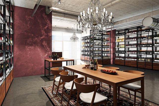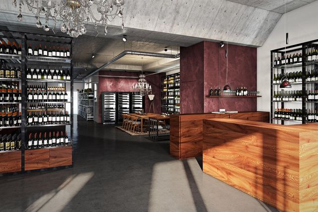 Auf 150 Quadratmetern wird das Sortiment in der neuen Weingalerie präsentiert. Der Raum ist großzügig angelegt und soll an einen mystisch funkelnden, zeitgemäßen Weinkeller erinnern, hofft das Unternehmen. „Klar strukturiert, authentisch und möglichst natürlich, ganz wie das hochwertige Lebensmittel selbst“ – so der Grundgedanke, der vom Architekturbüro Brems+Asanger erdacht und umgesetzt wurde. Geisels Weingalerie hat rund 850 verschiedene Positionen auf Lager – vorwiegend Weine aus europäischen Anbaugebieten.