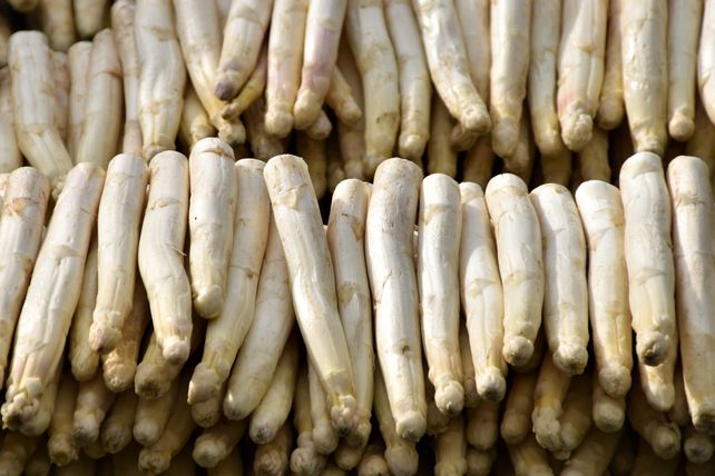 Die Zahl der Spargel-Betriebe sinkt seit Jahren, auf 1598 im vergangenen Jahr. Insgesamt wurde im Jahr 2020 Spargel auf fast 25 900 Hektar in der Bundesrepublik angebaut.