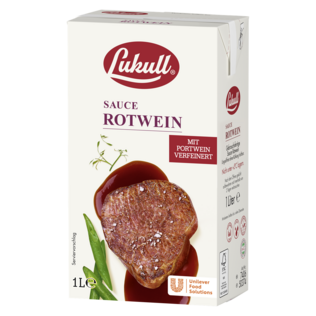Die Rotwein Sauce hat eine Rezeptur aus Portwein, Rotwein und Tomate, was für kräftigen Geschmack und eine dunkle rot-braune, glänzende Farbe sorgt. Sie ist ideal zu rotem Fleisch und passt je nach Saison zur Zubereitungstechnik, egal ob Grillen, Schmoren, Kurzbraten oder Sous-Vide-Garen. Auch ein vegetarisches Risotto mit glasiertem Radicchio erhält durch die Rotwein Sauce einen raffinierten Twist.