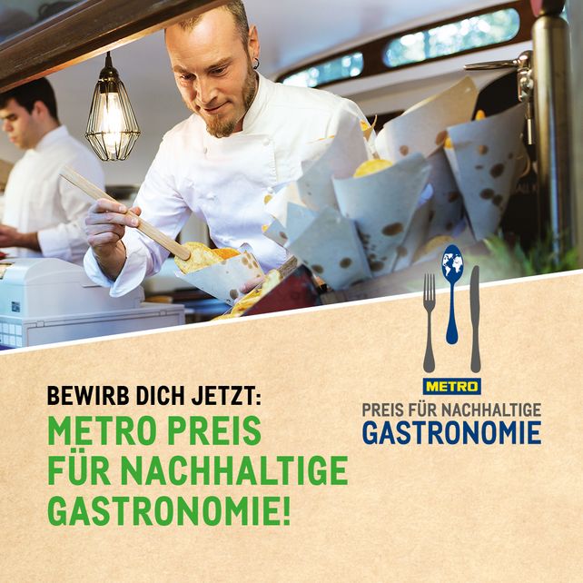 Der Tag der nachhaltigen Gastronomie ist auch Startschuss für die Bewerbungsphase des Metro Preises für nachhaltige Gastronomie. Der Preis zeichnet zum dritten Mal Unternehmer und Unternehmerinnen aus, die ihre Gäste und ihr Team von nachhaltigen kreativen Gastro-Konzepten überzeugen. Jede gastronomische Einrichtung, die in Deutschland liegt und aktiv betrieben wird, kann sich bis 31. Juli 2021 auf www.metro.de/aktionen/nachhaltige-gastronomie bewerben. Mitte September wählt eine neunköpfige Jury drei Kandidaten fürs Finale aus. In einem öffentlichen Online-Voting auf der Metro Website wird dann über die Platzvergabe eins bis drei entschieden. Die Preisverleihung findet im Rahmen des Deutschen Nachhaltigkeitstages Anfang Dezember 2021 statt.