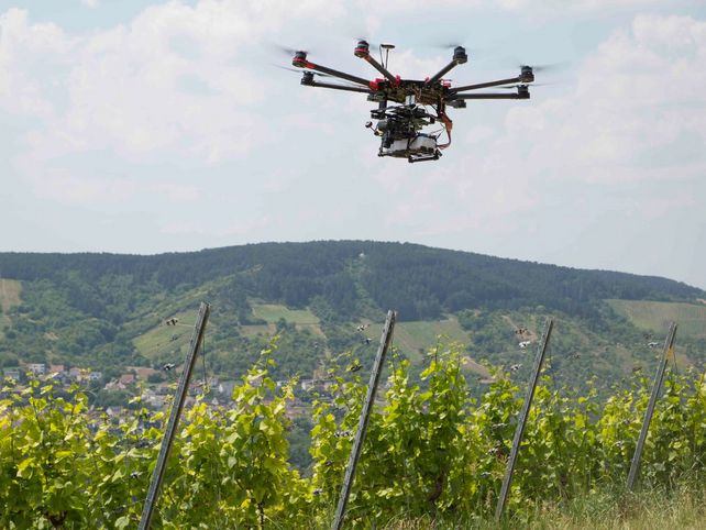 «Die Drohne kann über Infrarotkameras genau feststellen, wo ist Wasserbedarf in der Anlage. Und die Computeranlage steuert dann das Wasser genau dahin in den Weinberg, wo es gebraucht wird», erläuterte Steinmann. Die Bayerische Landesanstalt für Weinbau und Gartenbau in Veitshöchheim bei Würzburg testet seit Jahren diese Technik.
