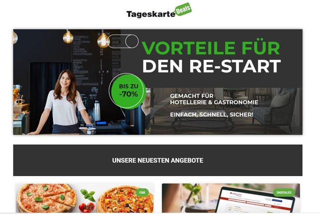 AN ALLE ZULIEFERER: Jetzt besondere Angebote für Hoteliers und Gastronomen drei Monate lang kostenfrei präsentieren (99 Euro Set-up-Gebühr). Über Tageskarte, die reichweitenstärkste Nachrichtenseite des Gastgewerbes, bringen wir Interessenten zu den „Deals“.