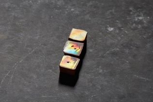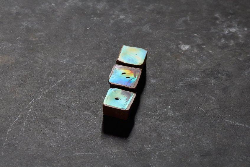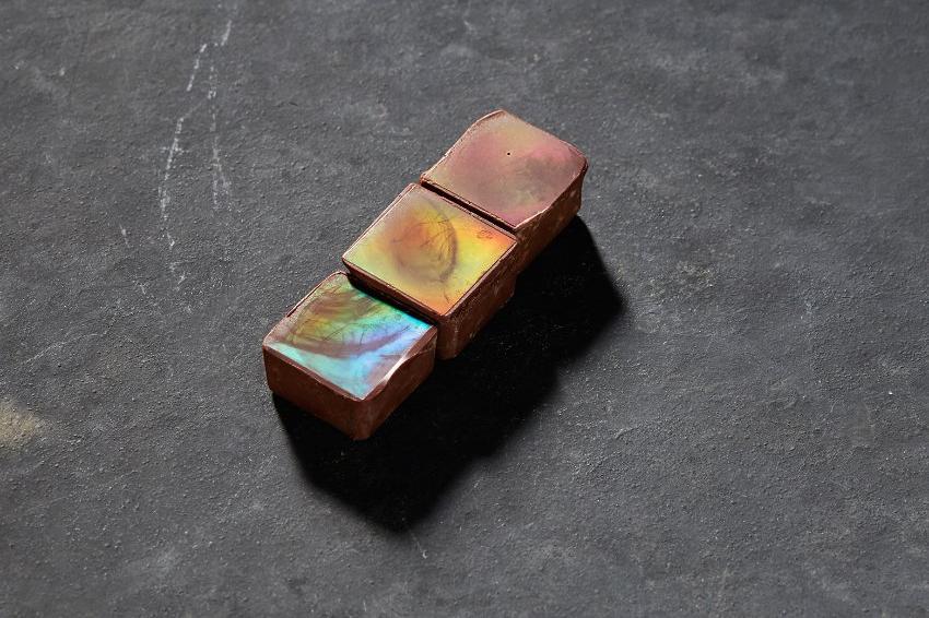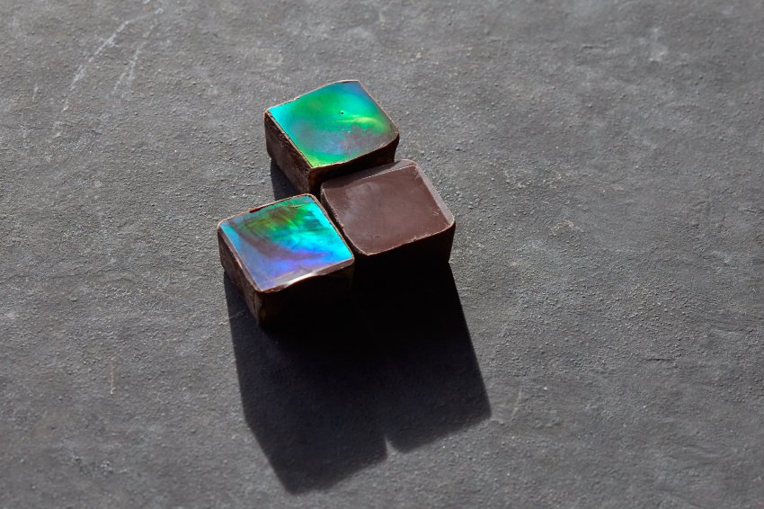 Nach der Prägung schillern die Pralinen in wild wechselnden Regenbogenfarben. Es scheint, als würden sie leuchten. Eine Gruppe von Forschenden der ETH Zürich und der Fachhochschule Nordwestschweiz haben dafür vor Kurzem ein Patent angemeldet.