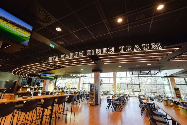 Die neu aufgestellte Stadiongastronomie wurde technisch und organisatorisch vollständig erneuert. Dazu gehörten die Modernisierung der Kühl- und Schanktechnik, die Erneuerung der Spülbereiche, der Ausbau zentraler Lagerflächen sowie die Implementierung neuer Verkaufs- und Kassensysteme. Alle Maßnahmen wurden so geplant und umgesetzt, dass Heimspiele und Events durchgehend stattfinden konnten – dafür erfolgte ein präzise abgestimmter Prozess zwischen Bauteams, Technik, Catering und Stadionbetrieb.