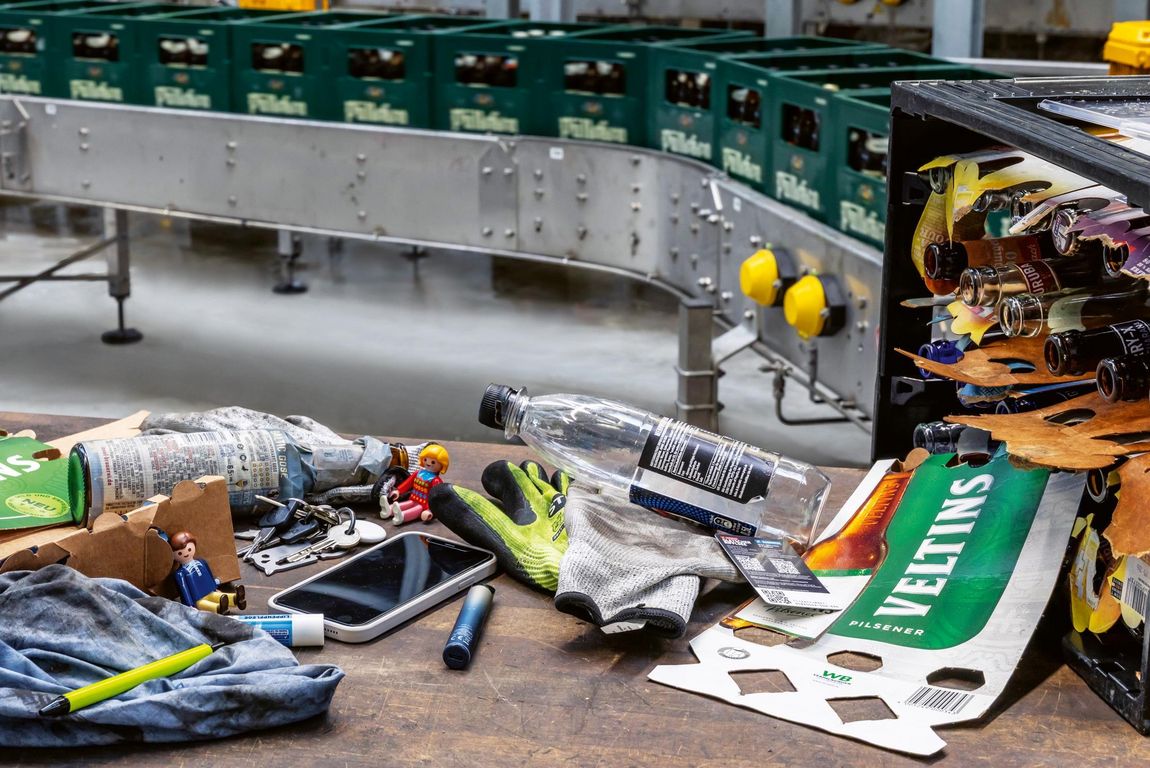 In der Brauerei C. & A. Veltins am Standort Meschede-Grevenstein durchlaufen täglich rund 100.000 Mehrwegkästen die Sortieranlage. Dabei zeigt sich regelmäßig, dass die Kästen während ihres Aufenthalts in privaten Haushalten oder in der Gastronomie als provisorische Ablage genutzt werden. Rund zehn Prozent der angelieferten Kästen enthalten Fremdkörper, die im automatisierten Prozess identifiziert und manuell entfernt werden müssen.