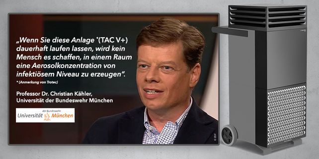 Sogar noch übertroffen werden diese von Prof Kähler definierten Kriterien vom mobilen Hochleistungsluftreiniger TAC V+. Entwickelt und gefertigt wird das Gerät in Heinsberg – ausgeliefert wird es in die ganze Welt. Eine stets aktuelle Übersicht auf der Unternehmensseite, welche Restaurants, Behörden, Schulen oder medizinischen Einrichtungen den TAC V+ Hochleistungsluftreiniger bereits einsetzen, unterstreicht die erprobte Wirksamkeit der TAC V+ Luftreinigung.
