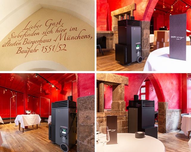 Drei TAC + Luftreiniger sorgen für virenfrei gefilterte Raumluft im Salon Rouge, während der Gastronom mit seinem Team exquisite Menüs für die Gäste in der Küche zaubert.