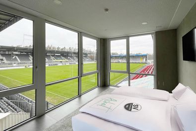 Die Achat Hotels bieten gemeinsam mit dem SV Sandhausen ein Übernachtungserlebnis der besonderen Art: eine Nacht in einem nachgebauten Acht-Zimmer für ein Fan-Paar im Fußballstadion.