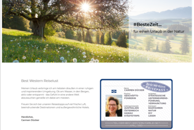 Mit Best Western Hotels & Resorts durch den Sommer: Mit der Marketingkampagne „Best Western Reiselust – Meine #BesteZeit“ möchten die Hotels Lust darauf machen, die schönsten Destinationen in Zentraleuropa zu entdecken.