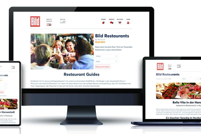 Die Kooperation beinhaltet die eigene Partner-Landingpage Bild-Restaurants, die weitreichend in das redaktionelle Umfeld des Medienportals implementiert wird. Durch zahlreiche Kontaktpunkte, wie zum Beispiel Werbeflächen, eine Integration in die Seitennavigation oder die Einbindung in redaktionelle Inhalte auf Bild.de, wird Quandoo auf dem Portal sichtbar.