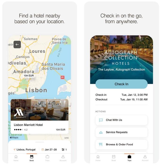 Neue Einkaufs- und Buchungsoptionen: Über die App sind ab sofort folgende Angebote buchbar: Privatobjektvermietung über Homes & Villas by Marriott International, Marriott Bonvoy Day, Stay und Play Pass-Angebote für flexibles Arbeiten in Hotels sowie Marriott Bonvoy Tours & Activities. Durch die Buchung über die App wird Gästen der niedrigste verfügbare Preis garantiert und ihnen ermöglicht, Punkte zu sammeln und bei Aufenthalten vor Ort Vorteile zu erhalten.