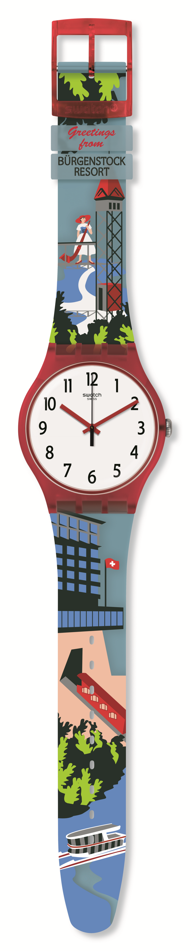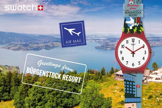 Die Schweizer Uhrenmarke „Swatch“ widmet dem Bürgenstock Resort eine eigene Uhr und erweitert damit ihre Kollektion der „Swatch Destination Watches.“ Die Uhr soll die Anreise auf den Berg oberhalb des Vierwaldstätter Sees darstellen.