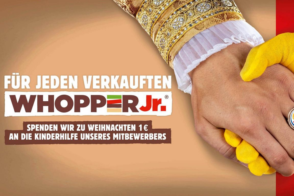 Weil Weihnachten die Zeit der Versöhnung ist, spendet Burger King in der Weihnachtszeit für jeden Whopper Junior einen Euro an die Kinderstiftung des Mitbewerbers McDonald‘s.