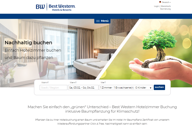 Click A Tree bei BWH Hotels Central Europe: Mit jeder Buchung in einem Hotel der Gruppe über die eigene Webseite können Gäste künftig Bäume pflanzen und etwas für den Umweltschutz tun.