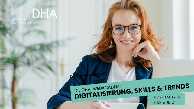 Die Hospitality befindet sich in einem tiefgreifenden Wandel, der durch digitale Innovationen, sich verändernde Kundenbedürfnisse und neue Trends geprägt wird. Wie Unternehmen diesen Herausforderungen begegnen und die besten Talente für Unternehmen gewinnen, darüber informiert die Deutsche Hotelakademie (DHA) in ihrer WebAcademy, einer informativen und interaktiven kostenfreien Webinarreihe mit Experten aus der Praxis. „Wir bieten die Webinarreihe mehrmals im Jahr als Service an, um topaktuelles Wissen ins Gastgewerbe zu geben. Das ist unser Beitrag zur Sicherung der Zukunftsfähigkeit unserer Branche“, erklärt DHA-Akademieleiterin Bettina Maas.