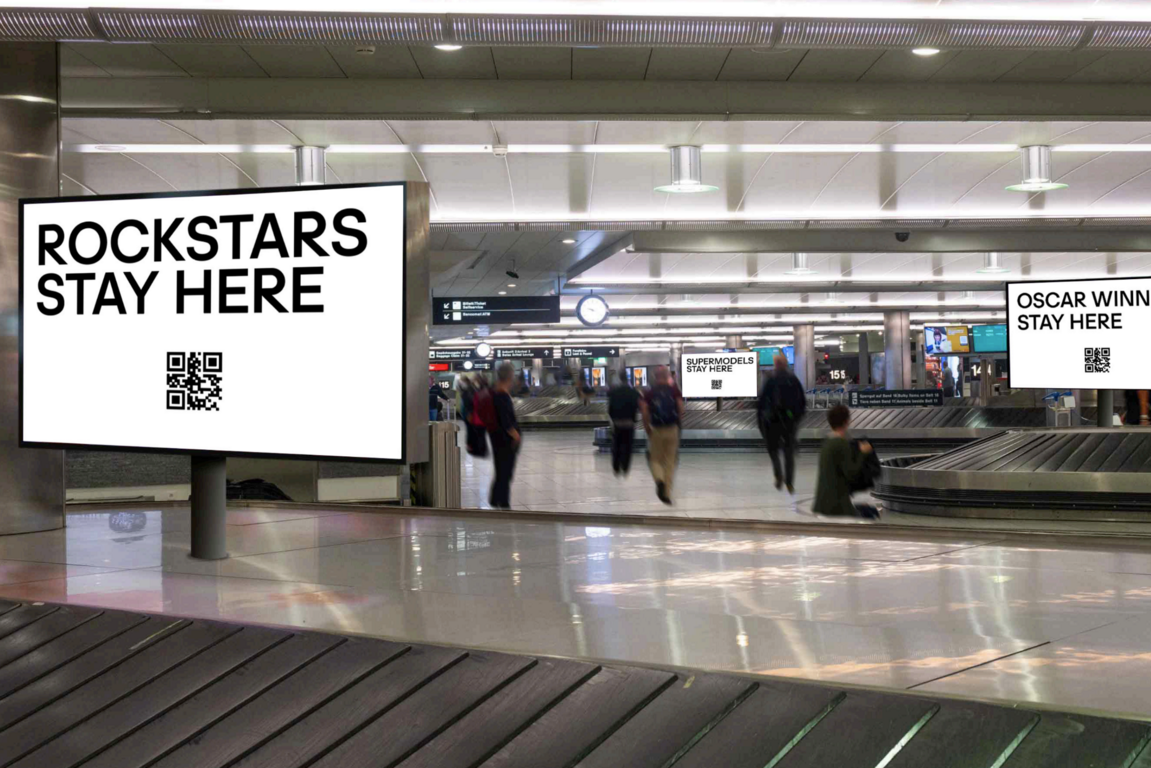 Der Kern der ganzjährig angelegten Kommunikationsstrategie ist eine internationale Werbekampagne, die mit unterschiedlichen Slogans wie «Hollywood Stars stay here», «Fashion Designer stay here» oder «Royals stay here» arbeitet. Dabei zeigt das Layout eine strenge, in Schwarz und Weiss gehaltene typographische Umsetzung, die nicht nur auf ein Motiv verzichtet, sondern auch auf ein Logo oder einen sonstigen Hinweis zum Absender. Lediglich ein prominent gesetzter QR-Code gibt Auskunft darüber, wer sich hinter der Kampagne verbirgt. Scannt man mithilfe des Smartphones den QR-Code, wird man automatisch auf die Website des Dolder Grand geleitet.