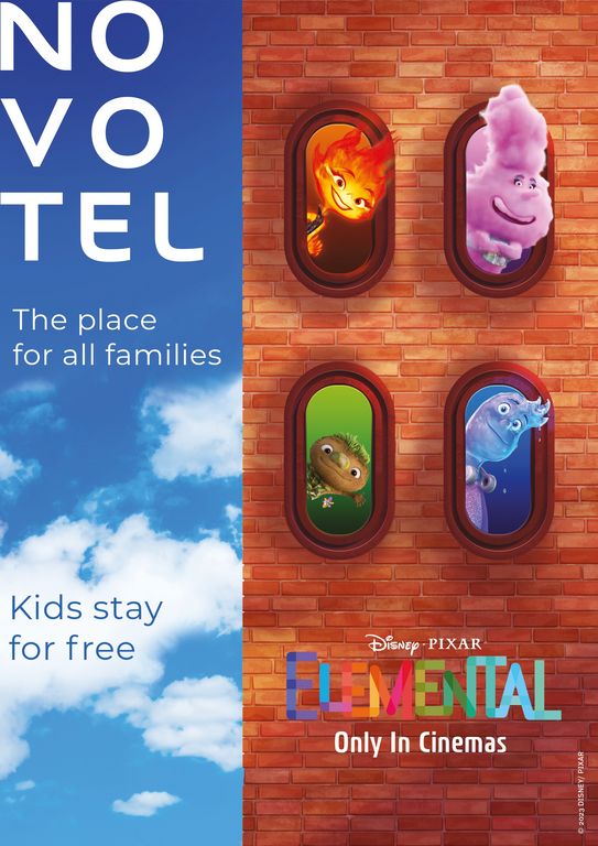 Seit dem 22. Juni läuft "Elemental" in den Kinos in Deutschland, Österreich und der Schweiz und damit auch die neueste Familienaktion von Novotel in Partnerschaft mit Disney und Pixar. Dabei geht es um kulturelle Vielfalt, Diversität und Verständnis für andere – Themen, die universell sind, aber besonders beim Reisen gelebt werden. In über 20 europäischen Ländern bietet Novotel seinen Gästen den ganzen Sommer über besondere Angebote, Überraschungen und Aktivitäten, die an den Film angelehnt sind. Fans können auf Social Media an einer Verlosung teilnehmen und ein von den vier Elementen inspiriertes Restaurant- und Hotelerlebnis in London gewinnen. Zuvor kooperierte die Hotelkette mit Disney und Pixar bereits für vier andere Animationsfilme.