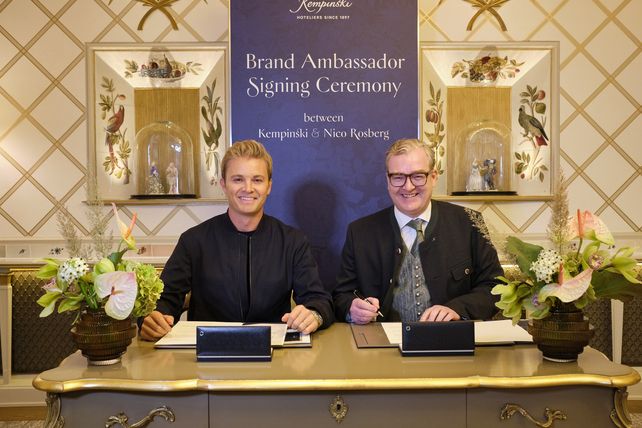 Der ehemalige Formel 1-Weltmeister Nico Rosberg ist ab sofort Markenbotschafter der Kempinski Hotels. Der Vertrag mit dem beliebten Motorsport Star wurde gestern mit Kempinski-CEO Martin R. Smura im Hotel Vier Jahreszeiten Kempinski in München unterzeichnet.