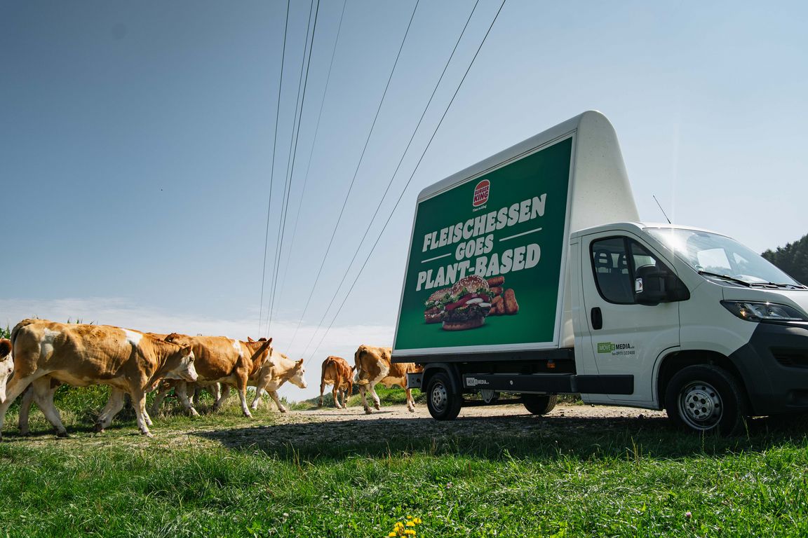 Um den Menschen in Fleischessen Alternativen aufzuzeigen, konzipiert Burger King gemeinsam mit der Kreativagentur Jung von Matt Donau eine außergewöhnliche Kampagne unter dem Motto „Fleischessen goes Plant-based“. Für den Werbeauftritt sorgen unter anderem Plakate, Sujets auf allen Laternen und statischen sowie mobilen Plakatflächen. Sogar Drohnen heben mit den auffälligen grünen Plakaten ab. Auch beim Befahren des Orts wird auf den ersten Blick klar, worum es geht: Ein Sticker unter dem Ortsschild von Fleischessen wirbt für den fleischlosen Genuss.